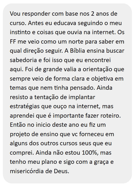 Sou pedagoga, especialista em Educação Cristã e atuo há mais de 8 anos ajudando famílias a formar filhos fortes – firmes na fé, no caráter e nas emoções.